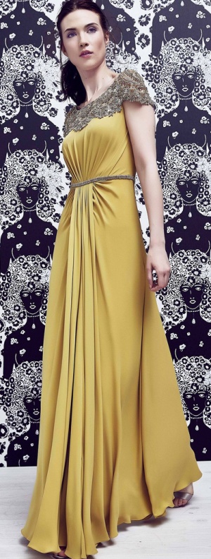 Платье цвета золота одновременно бьет по двум целям: оно желто-коричневой гаммы и самое что ни на есть новогоднее, так что знакомьтесь с модными моделями золотых платьев с эффектом искрящегося новогоднего дождика.