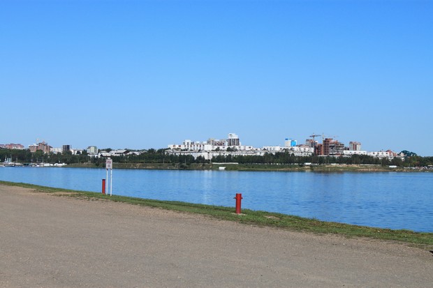 24. Едем назад, в город, вдоль водохранилища, вдали - город Иркутск