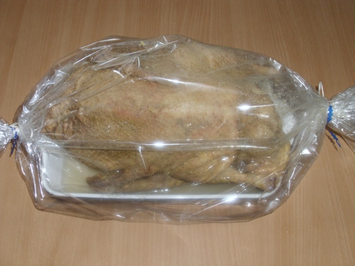 Утка с яблоками, запеченная в кулинарном рукаве в духовке