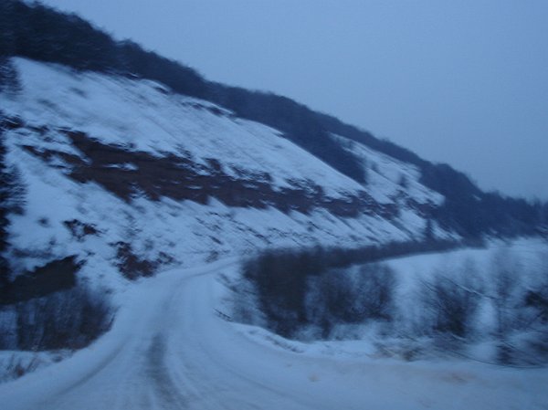 Здесь начинается не трасса, а убийство (крутые обледеневшие спуски).