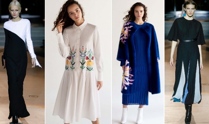 Тренды: черно-белые сочетания, этно-вышивка, платье-рубашка на пуговицах, присборенные швы, трикотаж, кожаный ремень: Тренды: платье-рубашка, платье-балахон: Тренды: платье-рубашка, кожаное мини-платье, асимметричный подол, бахрома: Тренды: накладные корсетные кожаные пояса и ремни: Тренды: отрезной волан по низу платья (трампет): Тренды: платье-клумба, кожаный пояс, меховая отделка: