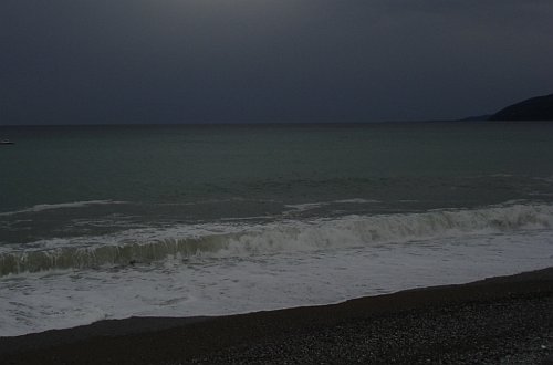 закончился на фоне все еще бушующего моря и затянутого тучами неба. Спать,